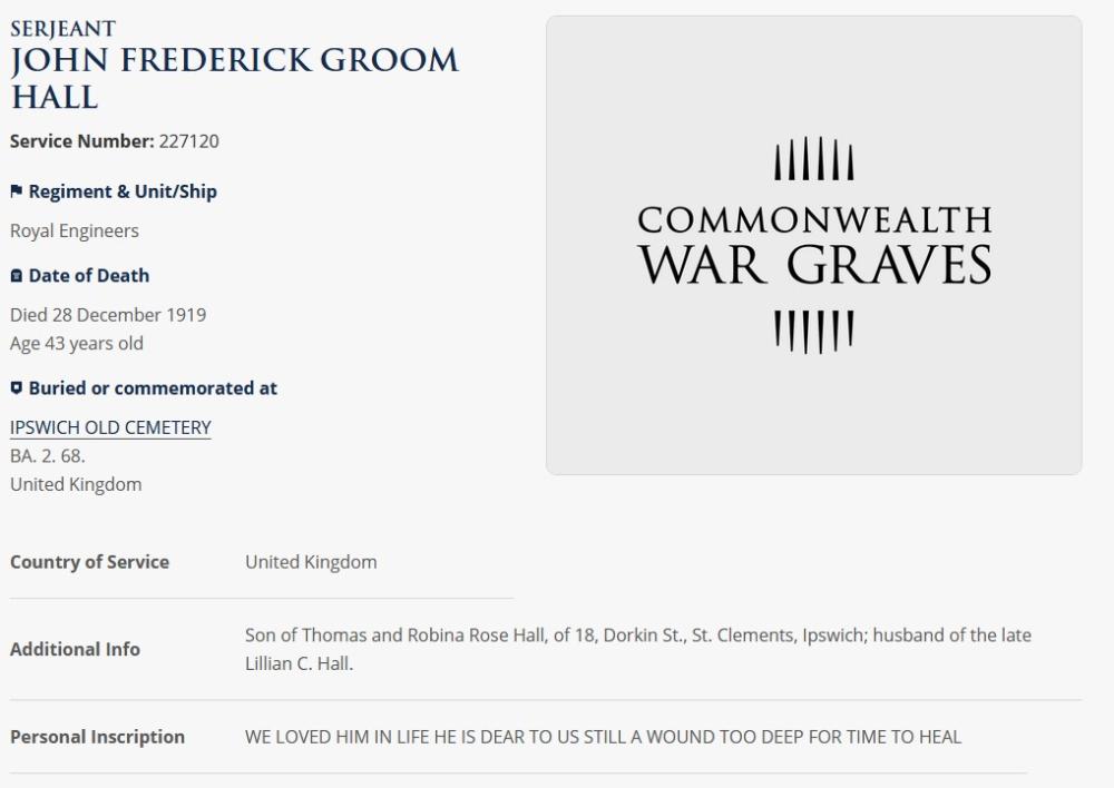 England and Wales Death Index 1837 - 2021, (on-line at www.gro.gov.uk, www.findmypast.co.uk and www.ancestry.co.uk). Ipswich 1953 quarter:3 volume:4b page:509. Cit. Date: 12 August 2021.