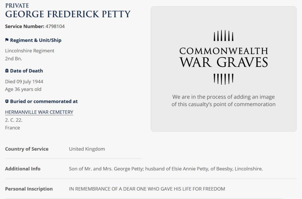 son living with his parents John and Annie, brothers John, James and Joseph, and sisters Fanny, Nellie, Bertha and Mable. Born in Croft Bank Linconshire