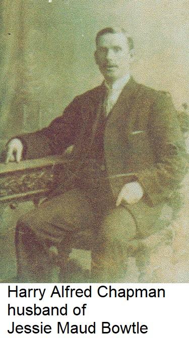 Harry a wheelwright of Hoddesdon Hertfordshire, Jessie of Hall Street, Melford, both single, groom's father Walter William Chapman a farmer, bride's father James Bowtle a bricklayer. Married by banns and witnessed by James Bowtle and Florence Ives